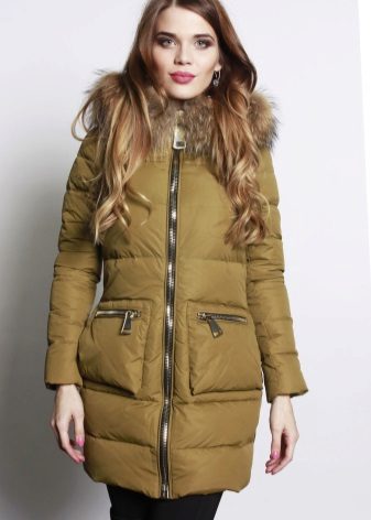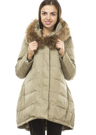 - with a hood - products that are practical. Often, girls do not want to wear hats because of styling damage. Such a style comes to their aid: a hood covers the mistress from the wind, and the fur on it adds warmth and aesthetics to the image;