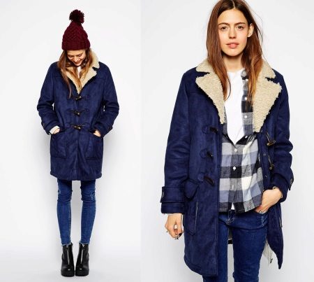 - sheepskin coat jacket - warm outerwear for autumn or winter. Option to hips or slightly lower. As a rule, jackets have a fitted cut and faux fur trim. Do not constrain the hostess's movements and are combined with many sets of clothes. Such a product emphasizes a slim figure;