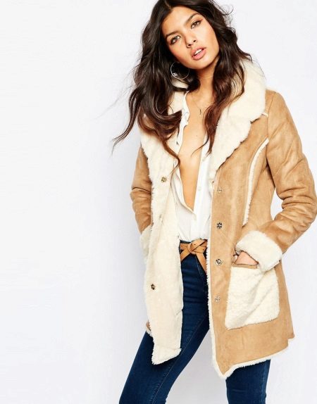 - with fur - sheepskin coats with decoration from silver fox and mink have recently been popular; they add status and appeal to the product; fur can be both natural (which will increase the cost of clothing) and artificial;