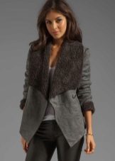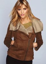 Among youth models are often found shortened options for the type of jackets, sheepskin coats, and products with sleeves ¾. Another interesting trend is the combination of artificial material with patch pockets made of matte dermatin, or with knitted sleeves.