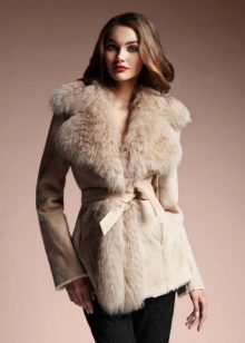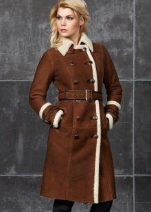 - sheepskin coat-coat with a wide belt instead of fasteners;