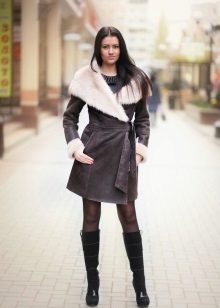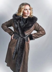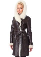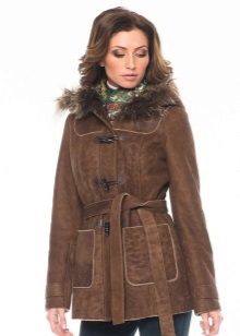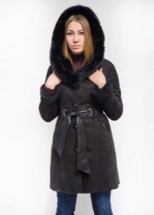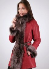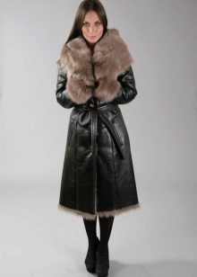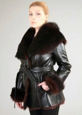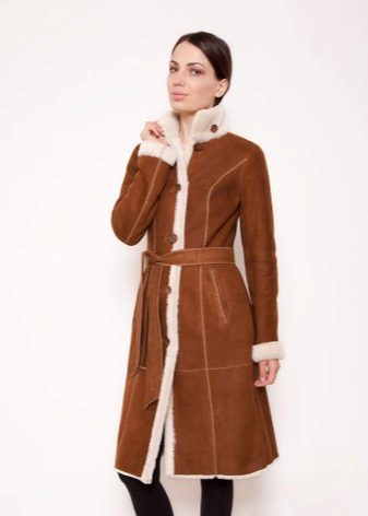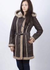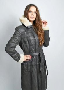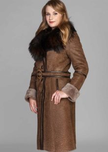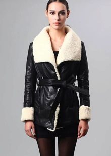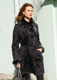 The belt on the fur side of the sheepskin coat is a leather narrow strap in the form of a tow, tied in a knot or bow. This model will be a godsend for many lovers of sheepskin coats, because the result is two complete models of sheepskin coats.