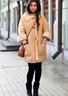 Models of a straight cut up to the middle of the thigh of the Raglan style or oversize were also included in the sheepskin fashion.
