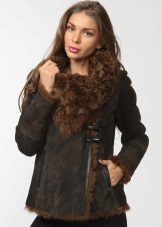 Short sheepskin sheepskin coats can be leather or suede. Leather models look expensive, have a characteristic unique sheen and a noble texture. The wrong side of such a thing is a warm natural sheepskin. Such products look stylish with fur on the collar, sleeve cuffs, pockets. As a rule, this is an elite long-furred fur (arctic fox, silver fox) or raccoon (having a more affordable price).