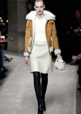 Suede models with a noble velvety surface, soft and elastic look no less impressive. Suede is obtained by carefully grinding the sheepskin. The most advantageous of such things look in color: pastel or, conversely, bright shades. Suede, like leather, blends in wonderfully with lush, expensive fur.