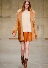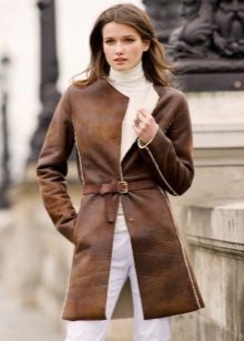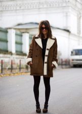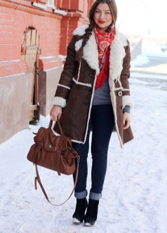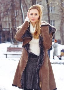 Midi-length sheepskin coats can be worn both in autumn and winter. A model of this length should be more carefully selected clothes underneath. Young people prefer to wear sheepskin coats to the knee with dresses or skirts.