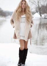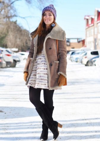 A short sheepskin coat looks beautiful in tandem with a dress.