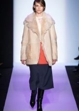 Sheepskin coats with fur look spectacular and stylish. Typically, designers use luxurious, fluffy fur to decorate outerwear. To emphasize the beauty of the upper body, to make it visually more voluminous, it is necessary to pay attention to models with a fur collar.