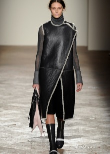 Today, the trend is simple color schemes, for example, a stylish combination of white and black in one sheepskin coat model.
