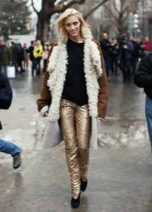 Young people often have a rebellious spirit. They strive to break the rules, and this applies to the choice of clothes. Designers have taken this feature into account and offer unusual models with leather inserts. Such a sheepskin coat is ideal for embodying a rocker style.