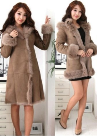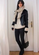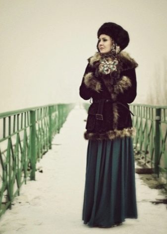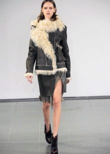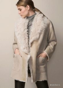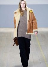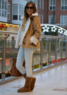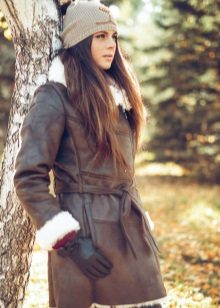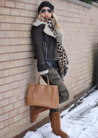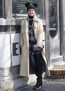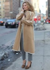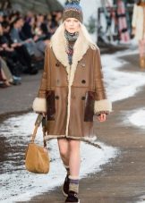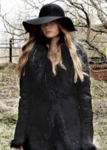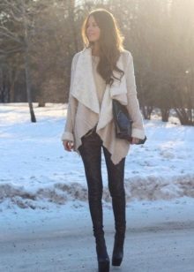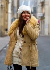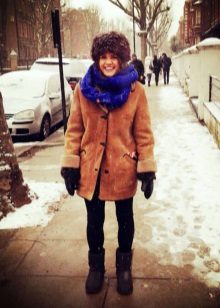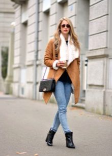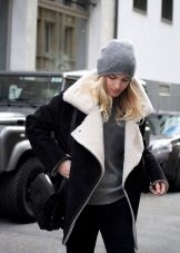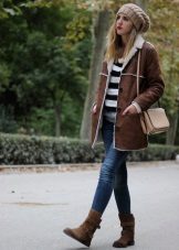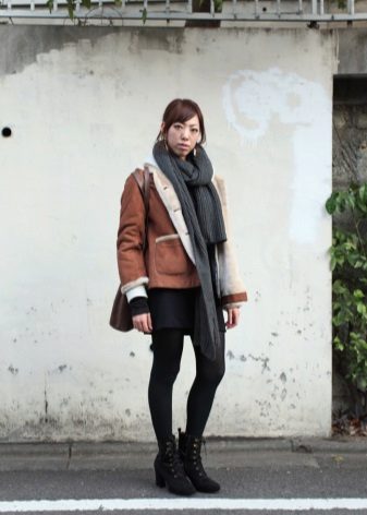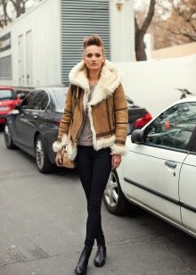 Such sheepskin coats suggest that the legs remain open, so it is important to choose the rest of the things that form the image.