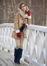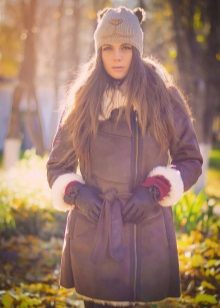 Stylists advise complementing the look, which is based on a sheepskin coat, gloves, as well as bags sewn from suede, wool or leather. With handbags you need to be careful - despite its low weight, the sheepskin coat is massive enough, clutches and bags on a chain will not combine very nicely with it.