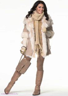 Regardless of how long and style the sheepskin coat will be, high boots are always appropriate with it, reaching the middle of the calf or even to the knee. The heel of such shoes should be small, and its complete absence is allowed.