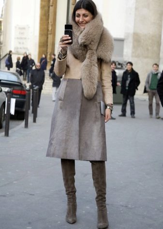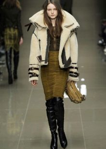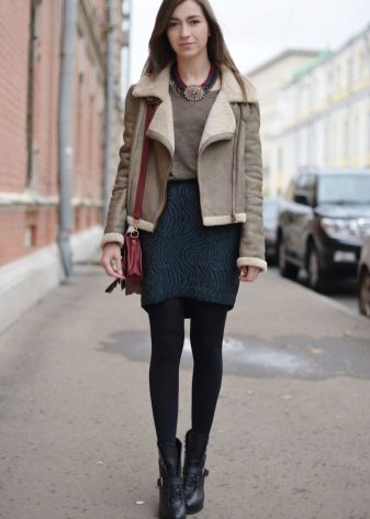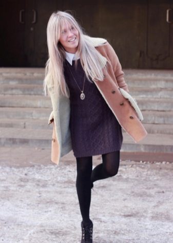 You can wear a dress and a skirt with tight tights or even gaiters. When forming an image based on an elongated sheepskin coat, you should always remember that even after removing it, there should be a harmonious and effective look.