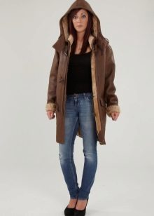 Ladies who look after a sheepskin coat with a hood can even refuse a hat or a hat - everything is already provided for in this model to protect from cold and wind.