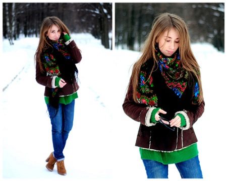 Wide woolen or cashmere stoles will add elegance to any woman, especially if you put them on top of your sheepskin coat several times folded. But for everyday use, not only scarves, but also scarves are suitable.