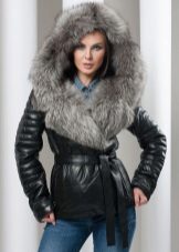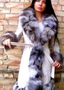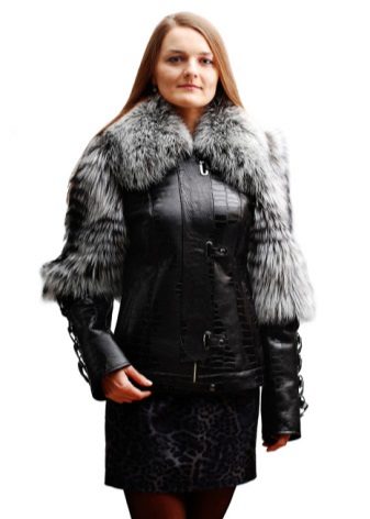 A bright model with silver fox fur looks spectacular and elegant. The game of contrasts gives the product originality.