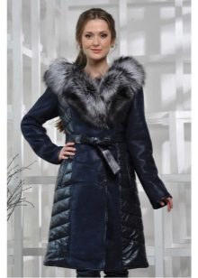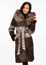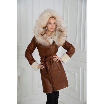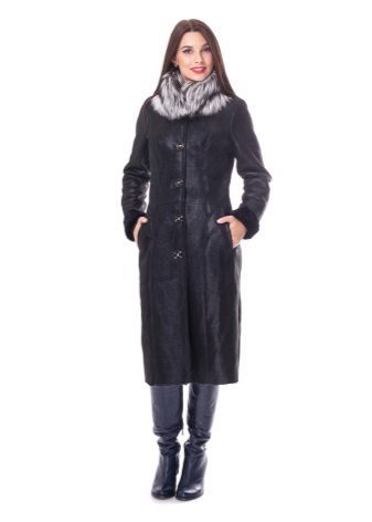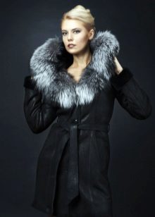 Lovers of classics should pay attention to sheepskin coats made of genuine leather on a fur lining. The traditional zipper and elegant belt are a great decoration for the model, but the main advantage is a beautiful silver fox collar. This model is ideal for business women who prefer strict lines.