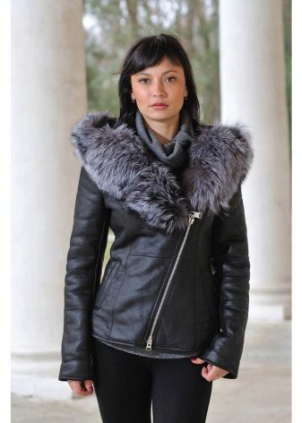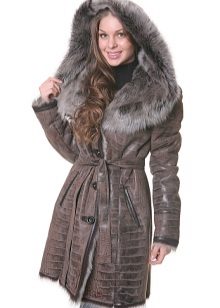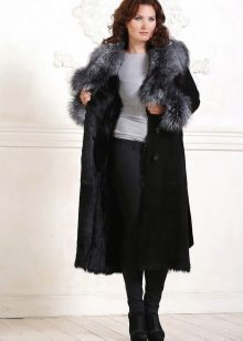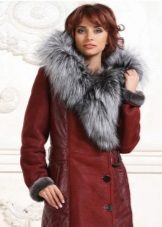 Another variety is a sheepskin coat made of genuine leather with a smell. This model has a lot in common with kimono. A wraparound sheepskin coat looks bright and unusual in combination with a lush silver fox collar, which performs not only a decorative function, but also a practical one. It will warm perfectly in the cold season, even in severe frosts. This style emphasizes the femininity of its owner.