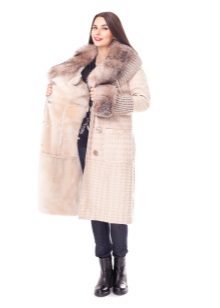 Sheepskin coats with silver fox fur trim can be presented in different cuts and colors. Models differ in the type of fastener, as well as the length. Designers supplement some products with a hood, cuffs, a belt and other beautiful decorative elements.