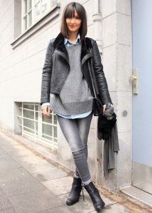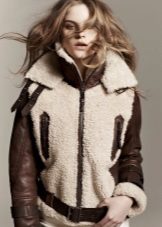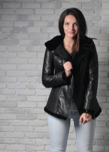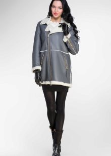 Short models are, first of all, aviators, jackets, straight or fitted models resembling jackets. Sheepskin coat can have a straight or asymmetric cut; models with a smell made in oriental style look interesting. Such sheepskin coats are perfectly combined with jeans, trousers, skirts and dresses of different lengths. As shoes, high boots and ankle boots with heels or a high platform can be used.