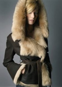 It is almost impossible to imagine a beautiful sheepskin coat without fur trim. The fur is used both as a heater and as the main decorative decoration. A hood, a collar, cuffs, the lower part of a sheepskin coat, shelves, etc. are made out with fur. Squeak of fashion - multi-colored fur, contrasting to the shade of the sheepskin coat itself.