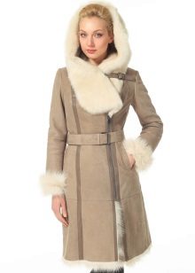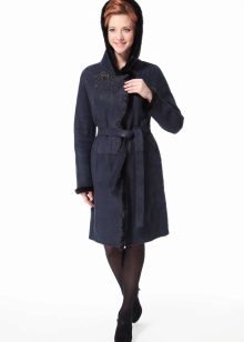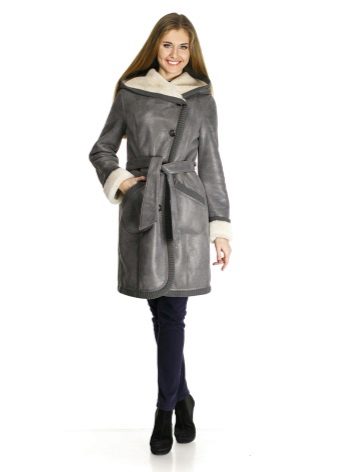 Lovers of everything new and unusual can choose original models, for example, in the form of bathrobes. Such a sheepskin coat does not have a fastener, but is fixed only with a belt. Due to the texture of the material, in such a sheepskin coat it will not be cold at all. The floors will not swing open, and the size of the model can always be easily adjusted with a belt.