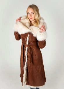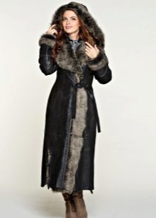 A long sheepskin coat is a very common option that looks good with different clothes. Most often these are A-silhouette models or “hourglass”. A special edge and nobility to such models is added by a luxurious edge made of marten, fox, sable fur.