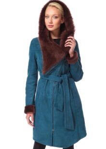 Suede sheepskin coat looks very noble and sophisticated, thanks to the special dressing of hides. The surface is velvet, soft, pleasant to the touch. Painted suede looks very interesting. Most often, suede sheepskin coats are complemented by an edge made of llama, fox or arctic fox fur. The edge of the silver fox looks especially beautiful and expensive. Soft, silky sheen noblely sets off a sheepskin coat made of suede, leather, sheepskin, etc.