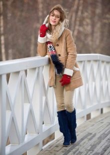 A flared, lush sheepskin coat with a beautiful decor looks great with very feminine models of boots or ankle boots. They can be with or without heels. Laconic, restrained sheepskin coats - jackets or bombers require appropriate shoes: heavy boots with lacing, high boots a la jockey, ugg boots.