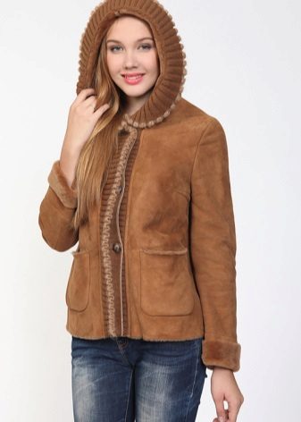 - Knitted. Such models look especially interesting. Usually knitted hoods are used in combination with other knitted items. It can be pockets or sleeves, for example. Knitwear is most often combined with leather or suede.