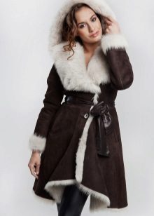 Often there is a brown sheepskin coat on sale, which can be supplemented with both white and black fur. Many beauties prefer black models that look spectacular and stylish in combination with white or gray fur. Young people prefer bright colors, so often acquires a blue or blue sheepskin coat. They look great in tandem with white or brown fur.