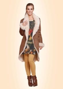Sheepskin coat with fur can be of different lengths. Today, elongated models are trending because they retain heat very well. Many fashionistas prefer shortened options. Well-known designers in the new season pay attention to sheepskin coats knee-length or slightly lower.
