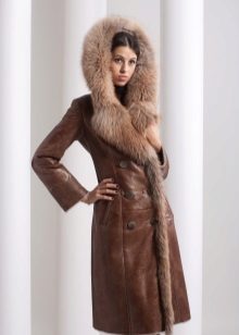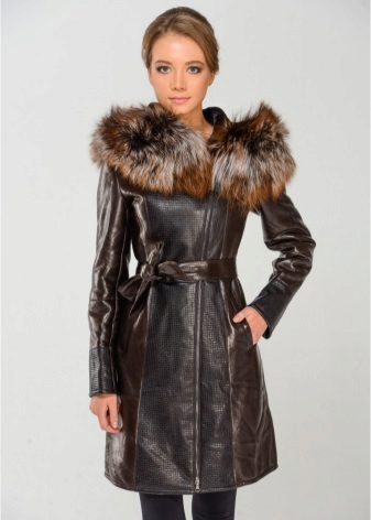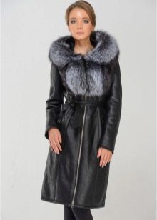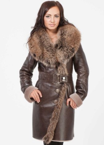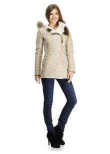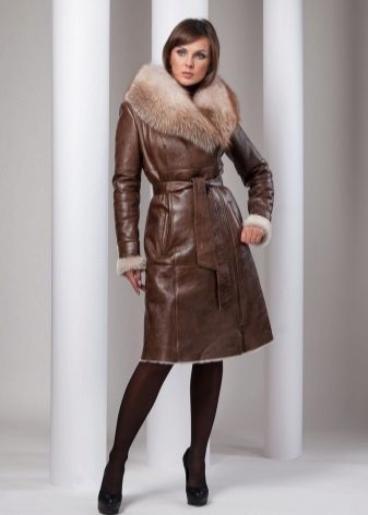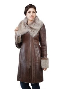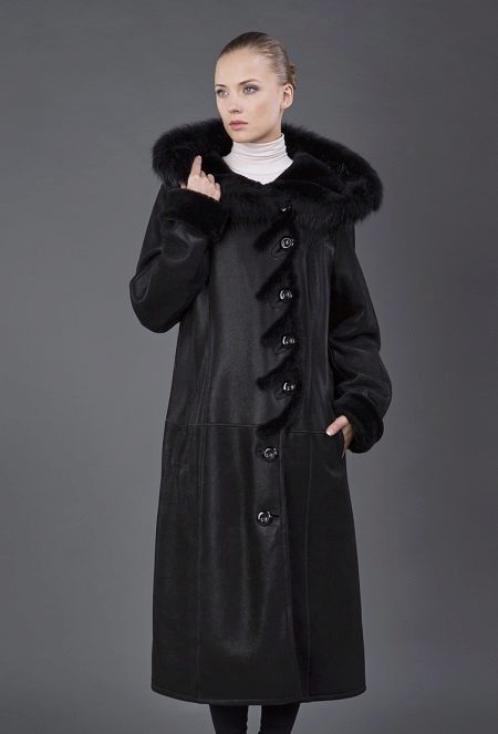 Sheepskin coats on the floor can be decorated with different fur, but the trend is the marten, fox and sable fur. This tandem is ideal for mature women.