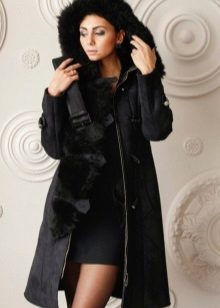 Many models from the new collections are represented by combined options. Fur can be used not only for decorating the collar, which is often the main accent. Designers like to decorate products with fur on the bottom or along the line of buttons. Pockets decorated with fur look beautiful.