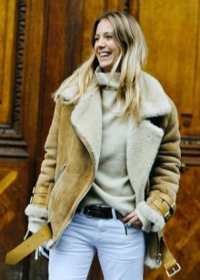 Sheepskin coat pilot is a shortened model. She has a lot to do with a jacket. This option is ideal for self-confident women who value convenience and comfort.