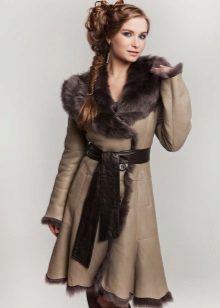 So, universal is always relevant average length of female sheepskin coatslooks luxurious long floor modelalso have many shortened youth options. Dynamic representatives of the stronger sex will like shortened models that are very convenient for long trips. For other cases, a more elegant long style will be appropriate.