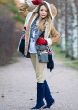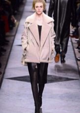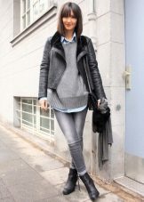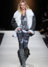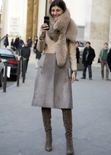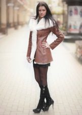 An oversized model with boots will create a harmonious look. The shortened sheepskin coat with over-the-knee boots doesn’t look very representative, but such hooligan style will suit young young ladies.