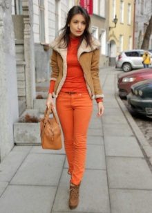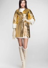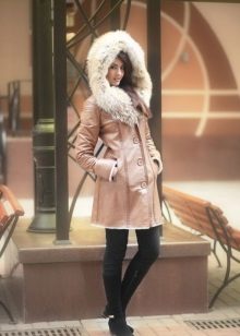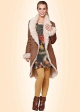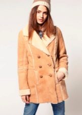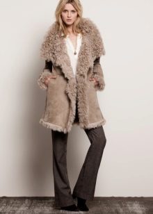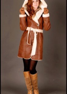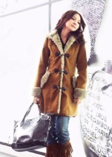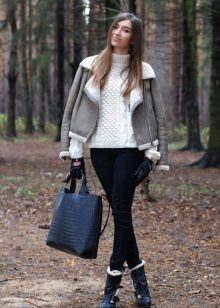 A short sheepskin coat and a fitted model of medium length can be combined with fashionable and popular uggs, the main thing is that they suit the sheepskin coat in color and texture.