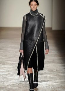 The length of the sleeves is always under the scrutiny of designers. Among the demi-season models there are sheepskin coats with sleeves three quarters, with shortened sleeves and completely sleeveless.