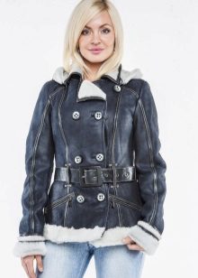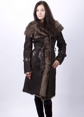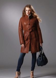 Coat classic sheepskin stylecan be single breasted or double breasted. The waistline is often emphasized by a belt.