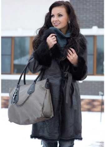 Women with an hourglass figure should choose a sheepskin coat with a belt and emphasize the waist. Women with such a figure can safely choose a stylish model of a sheepskin coat with a smell. The original model - the robe is fixed with a belt and does not have a fastener.