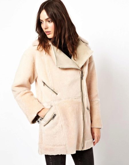 Familiar models with asymmetric details look original and interesting. Different types of sheepskin coats are obtained using decorative bracelets, tucks, reliefs. Pockets in sheepskin coats are primarily of practical importance, but often fashion designers use them for decoration, for example large patch pockets.