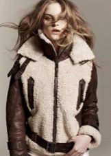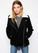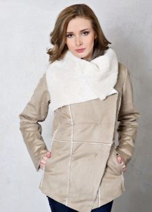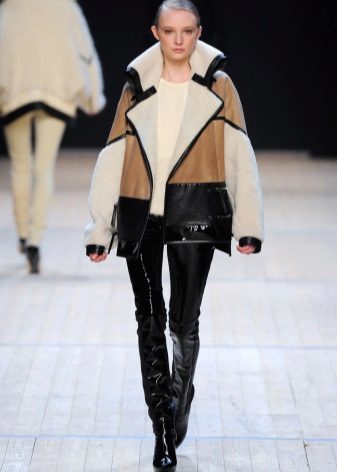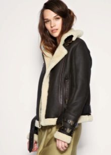 A sheepskin coat in the style of an aviator jacket is considered quite popular. It is characterized by voluminous and wide lapels. Such a sheepskin coat can be decorated in different ways. High heels, a skirt, jeans or dress pants will suit her.