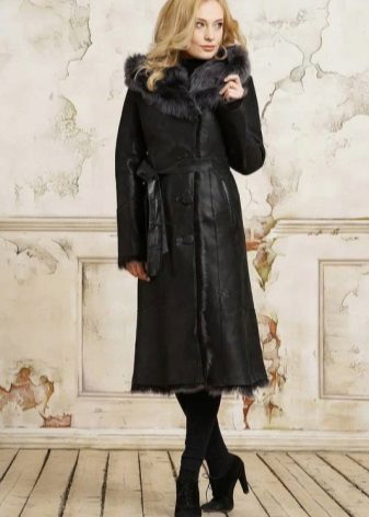 If you like original things, pay attention to a sheepskin coat. This style has a belt that is fixed at the waist and has no other fasteners. Despite such a cut, the sheepskin coat does not swing open during movement. It is cozy, warm and comfortable. In addition, thanks to the belt, it is possible to adjust the size according to the figure.