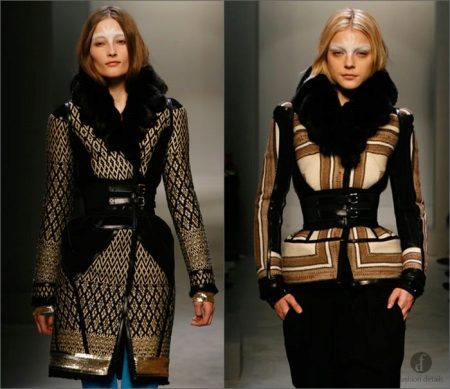 Another fashionable model are sheepskin coats in the style of the 60s. They are distinguished by perelina and short capes.