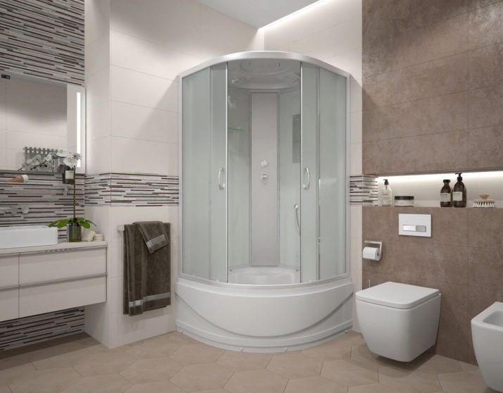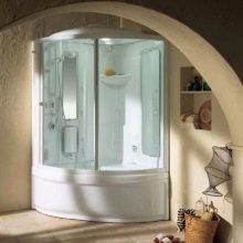 This is one of the most technologically advanced models that has many features. Among them there is a back hydromassage, a control panel, a clock, FM radio, overhead lighting, ventilation and a rain shower.