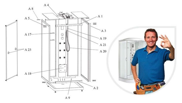 - Simple assembly. You can assemble the Erlit shower cabin yourself if you carefully study the instructions. It is understandable and does not require special knowledge. A complete set of fasteners comes with the unit, most of which are bolts and nuts. It is this combination of fasteners that reduces the need for additional holes. Joining elements are made with all the basic requirements for the design, so with the right fasteners, they must be held tight and not loose.