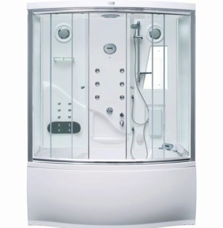 Is present rain shower function which will allow you to cheer up well in the morning. The mixer has 5 positions, and also has a thermostat, which, even with differences in water temperature, will allow you to keep water that is comfortable for you. A nice addition is the fact that the cabin has a radio, shelves, two seats and a mirror.