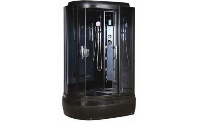 A black, stylish cabin NG-1816 with an imitation of a Turkish bath, with dimensions of 90x210x90 cm, costs about 40 thousand rubles. It is equipped with a hydromassage, a Turkish bath and a Turkish shower, a built-in radio and telephone, lighting and ventilation, a timer and two-leaf sliding doors.